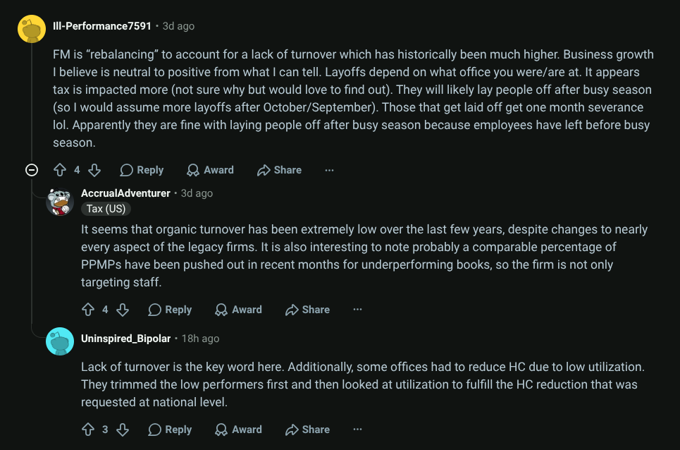 It seems public accounting is in a nasty holding pattern at the moment. Job market sucks so people don’t want to leave, firms need them to leave because they aren’t making the kind of money they were just a few years ago and need to replace more US salaries with offshore ones, you get the idea. Now we’ve got AI investment in the mix too, they’re going to have to start showing some kind of ROI for all the money they’re throwing at that.