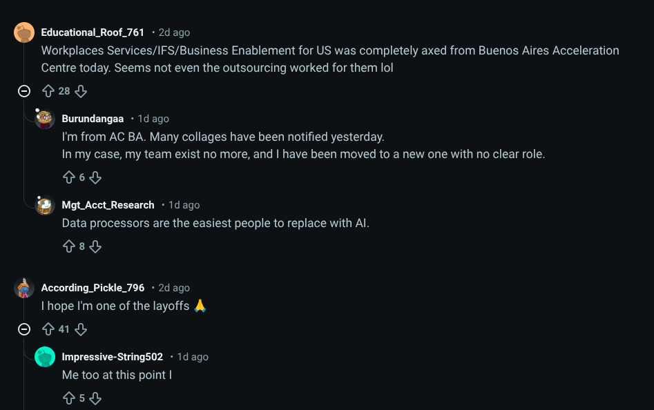 This thread on r/Big4 backs up our tipster’s info. Not even nearshore staff are safe?? What even are we doing?
